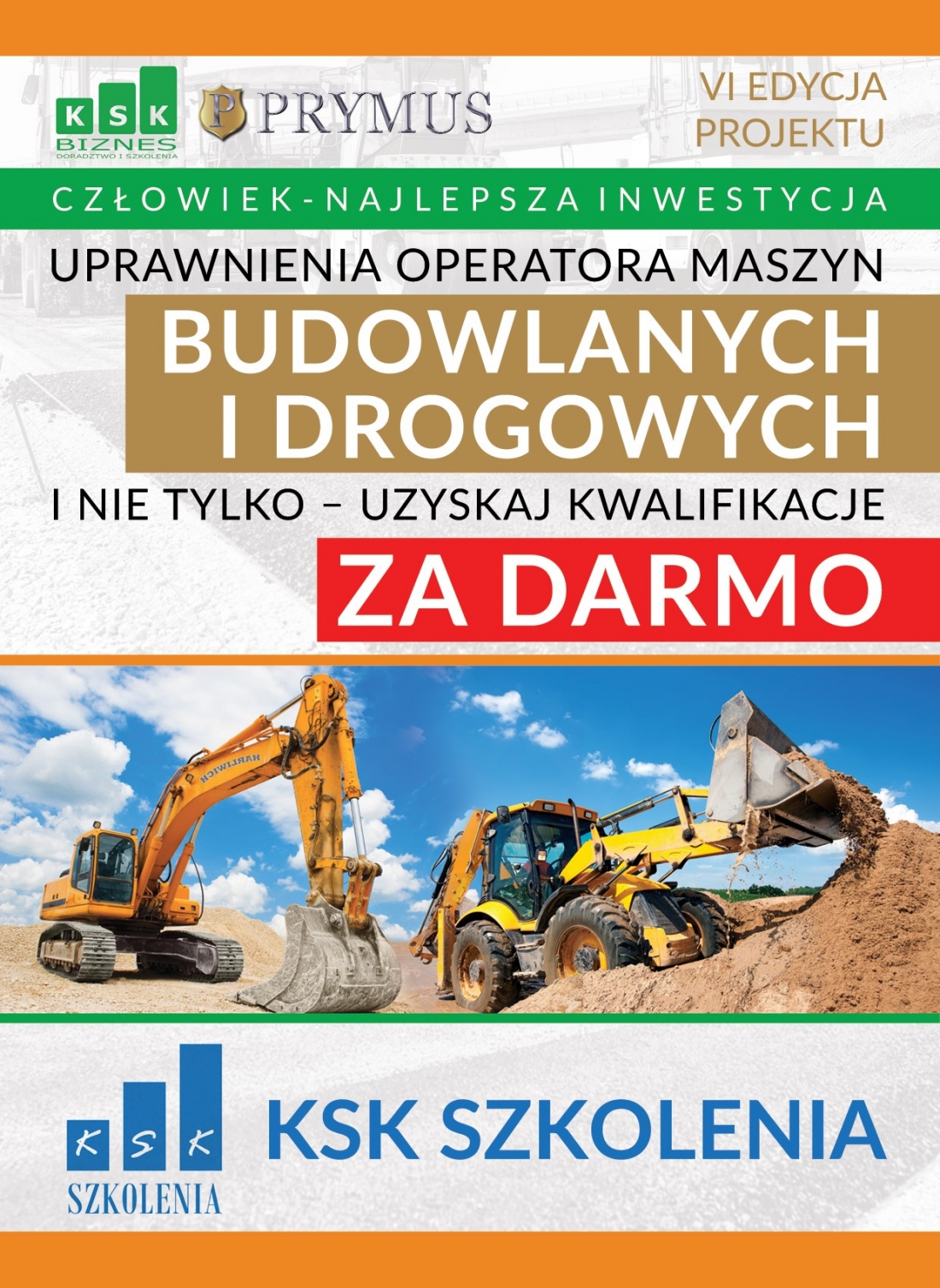 Zapraszamy wszystkich chętnych do odbycia bezpłatnego kursu na operatora maszyn budowlanych i drogowych.