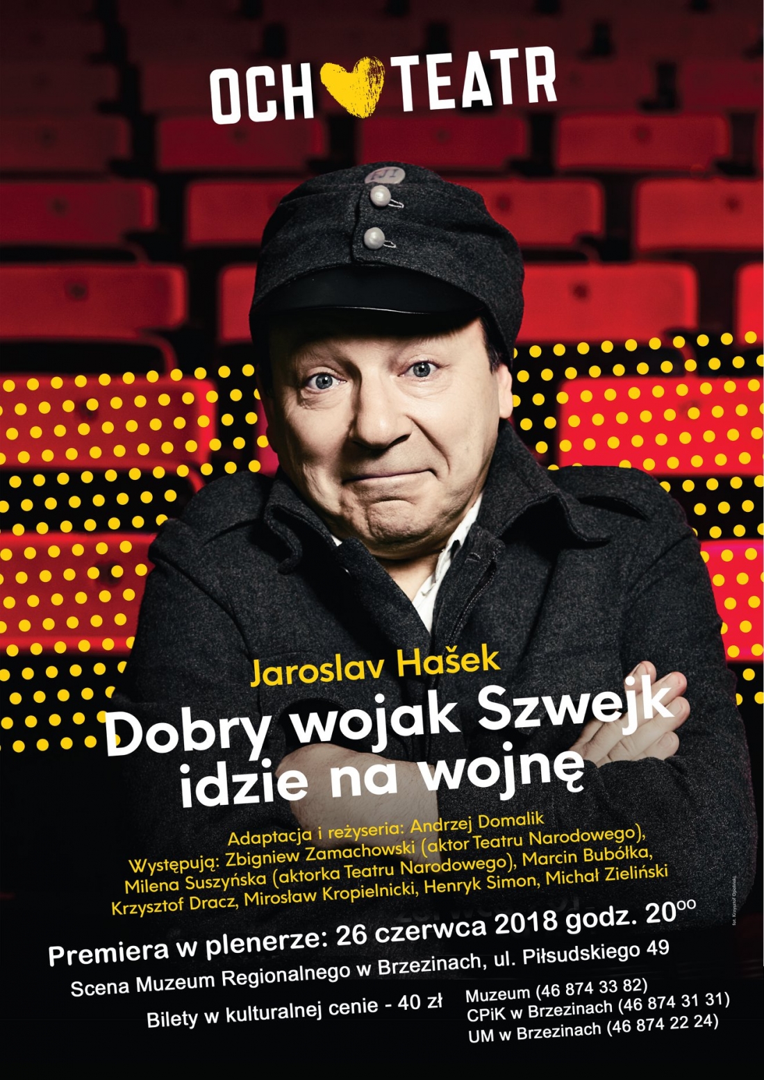 Już dzisiaj o godzinie 20 w Muzeum Regionalnym w Brzezinach kolejny spektakl "Och Teatru", czyli "Dobry wojak Szwejk idzie na wojnę". Bilety w cenie 40 złotych do nabycia w Centrum Kultury i Promocji w Brzezinach.