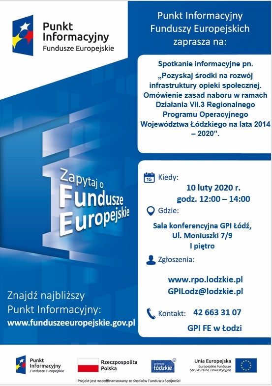 w formularzu zgłoszeniowym, który jest dostępny na stronie: https://rpo.lodzkie.pl/szkolenia-pife/item/4018-spotkanie-informacyjne-dotyczace-pozyskiwania-srodkow-na-rozwoj-infrastruktury-opieki-spolecznej. Z uwagi na ograniczoną liczbę miejsc o udziale w spotkaniu decydować będzie kolejność zgłoszeń.