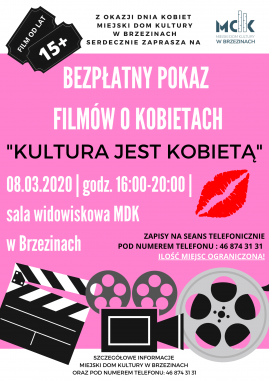 Z okazji Dnia Kobiet Miejski Dom Kultury w Brzezinach serdecznie zaprasza na bezpłatny pokaz filmów o kobietach.